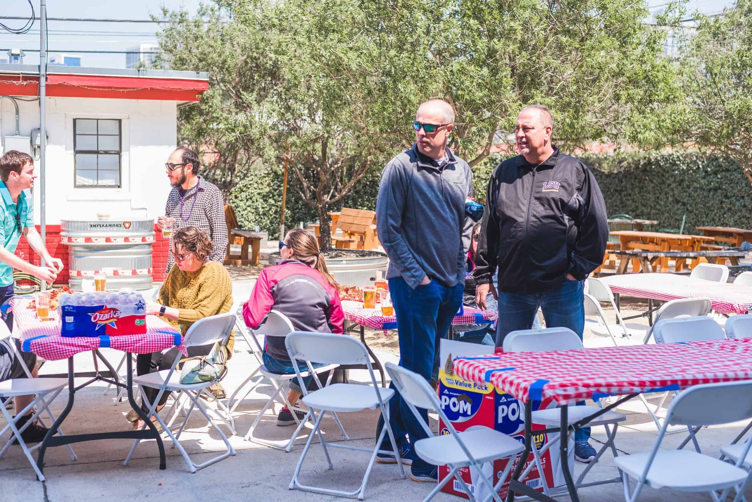 If it’s springtime, then there’s likely a spicy scent to the air around the Global Data Vault. We were happy to celebrate our 15thAnnual Crawfish Boil surrounded by our families, friends, business partners and customers at the Texas Ale Project in Downtown Dallas. Despite Mother Nature’s best efforts to either blow us away, rain us out, or freeze the day, the sky came clear and the sun peeked out for our party at the craft beer garden for the afternoon.